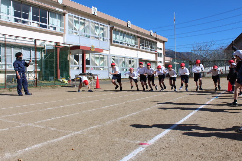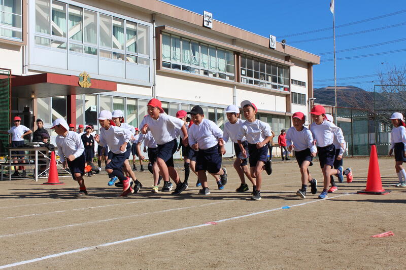 本日(12/8)、少し寒い風が吹き、暖かな陽光が降り注ぐ最高のコンディションの中で、持久走大会を開催しました。沿道には、50名超の保護者や地域の方の参観(応援団)がいらっしゃいました。