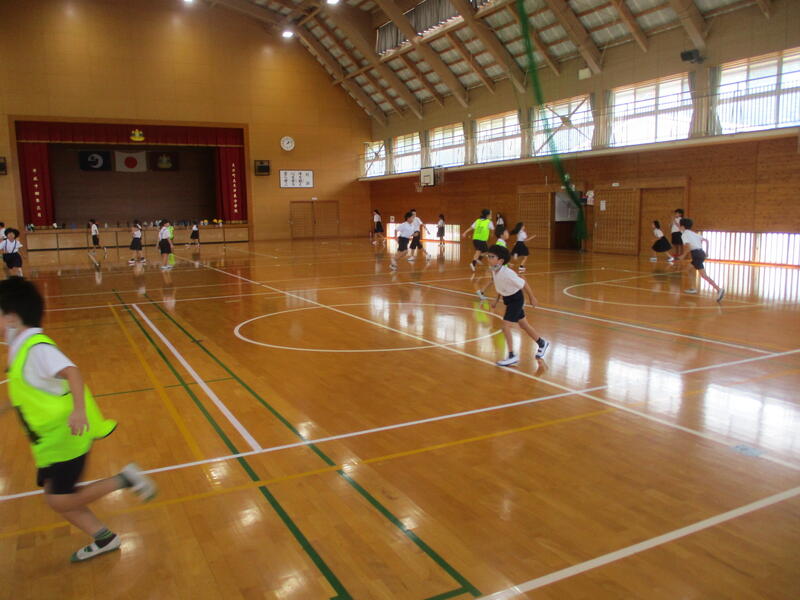 本日(9/3)、いのち委員会の企画で、全校遊びをしました。今日は、体育館で“こおり鬼”でした。