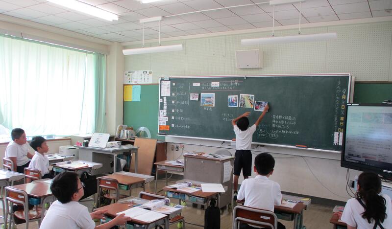 5年生は担任の先生と社会科の授業でした。水産物の水揚げ等の工夫について熱心に話し合っていました。