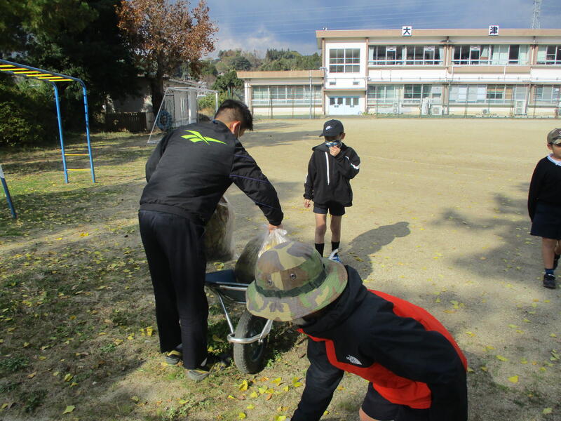 昨日(12/23)、銀杏の下で作業をしていると、5・6年生が銀杏の入ったゴミ袋を集積場まで運んでくれました。何かを言うでもなく、至って自然なボランティアです。