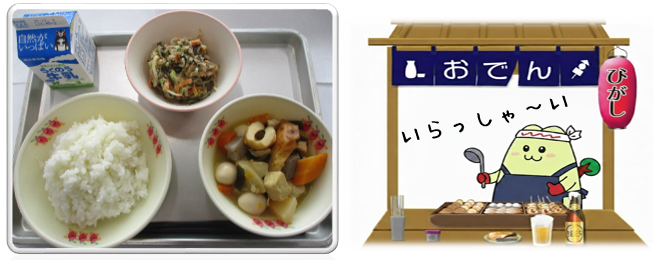 【本日の献立】★11月20日(木):ごはん、おでん、かつのりサラダ、牛乳