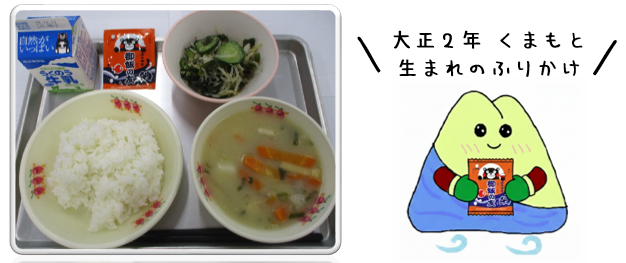 今日は、ご飯が進む和風献立です。さつま汁は、「さつま 鹿児島」の地名に由来しています。いもは、大津町産のさつまいもを使っていますよ。ごぼういりハンバーグはシャキシャキとした食感があり、放送当番さんからは「おいしかったです」との感想が聞かれました。寒い季節に嬉しい、体が温まる一品でした!12月も元気に過ごしましょう(^o^)/