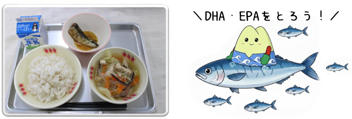 今日は、体に嬉しい栄養満点の和風献立です。いわしなどの青魚には、DHAやEPAが豊富に含まれています。これらの栄養素は、脳の働きを助けたり、血液をサラサラにしたりする働きがありますよ。放送当番さんからは、「イワシのおかげでご飯がすすみました」と嬉しい感想が聞かれました!青魚を食べて、頭も体も元気に過ごしましょう(^_^)