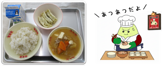 【本日の献立】★12月22日(月):ぷちまるごはん、ぎょうざ、キムチいり豚汁、牛乳