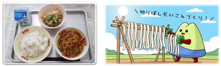 今日のメインは、「マーボーはるさめ」です。副菜の「切干大根」は、太陽の光を浴びて乾燥させることで甘みが増し、栄養とうま味がぎゅっと凝縮されています 。放送当番さんは「大根は天日干しされているから、甘みがあって美味しかったです。きゅうりともよく合っていました!」と食レポをしてくれました。生の大根とはひと味違う、独特の食感と風味を楽しみましょう。2月もおいしい給食をしっかり食べて、元気に過ごしましょう(o^^o)