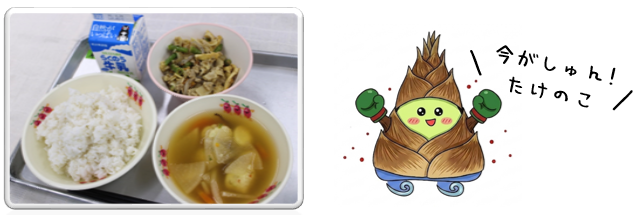 今日は今が旬の「たけのこ」を使った料理が登場しました! たけのこは竹の若い芽を掘り出したもので、この時期ならではの香りと味わいが楽しめます。放送当番さんは「つみれは固そうだなと思って食べたら、やわらかくてふわふわでした!」と、見た目とのギャップに驚いた様子で食レポしてくれました(*^^)v 春の味を堪能することができた献立でしたね(^_^)