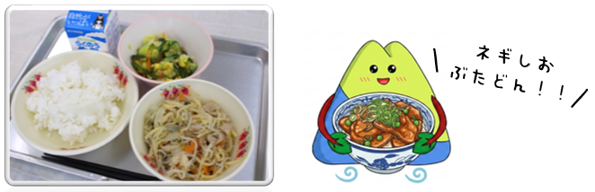 【本日の献立】★4月16日(木):ねぎ塩豚丼(ごはん)、アーモンドサラダ、牛乳