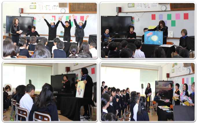 3月11日(水)1校時、読み聞かせボランティア「ゆうすげの会」のみなさまによる「おはなし会」を開催しました。「ゆうすげの会」のみなさまには、この一年間、毎週金曜日の朝の時間に読み聞かせをしていただきました。子どもたちはいつもこの時間を心待ちにしており、本年度の締めくくりとして、今回は全校児童へ向けた特別なプログラムを用意してくださいました。