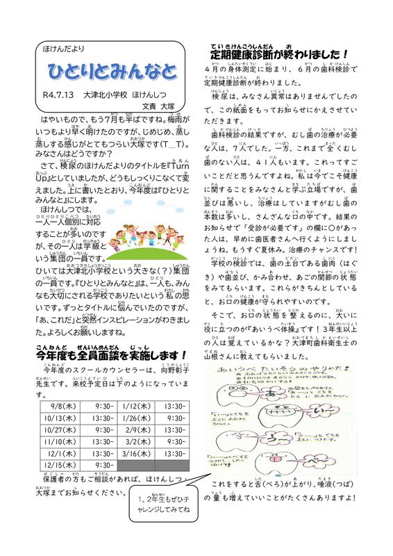 トップページ校歌大津北小学校グランドデザインお知らせ行事予定学校生活校内研修学校評価ほけんしつ生徒指導学校通信図書室PTA学校運営協議会大津町学校教育ビジョン学校いじめ防止基本方針こども人権相談