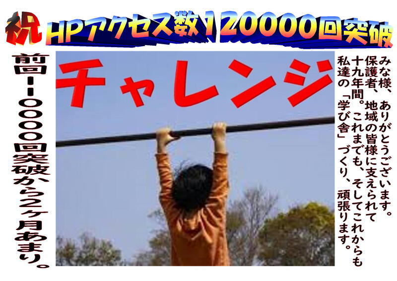 HPアクセスが、120,000回を突破しました。前回110,000回突破から2ヶ月あまり。