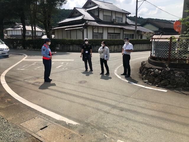 横断歩道を設置するには、横断前の待機場所が必要だそうです。写真にはありませんが、現在横断している場所の確認もしてもらいました。