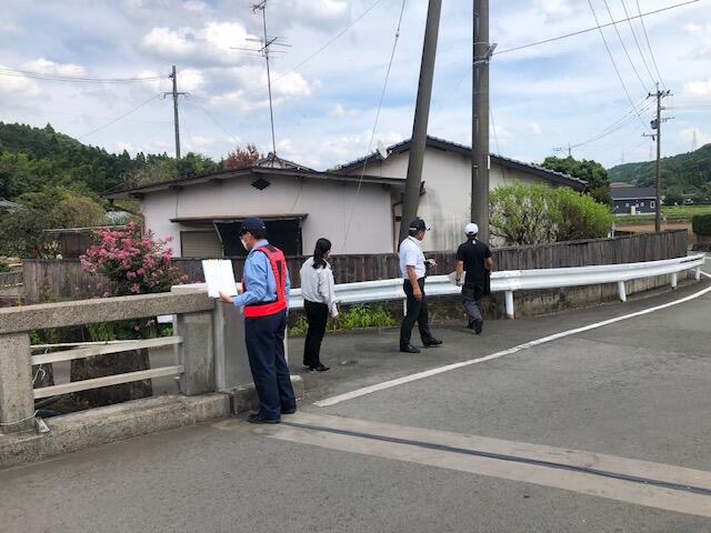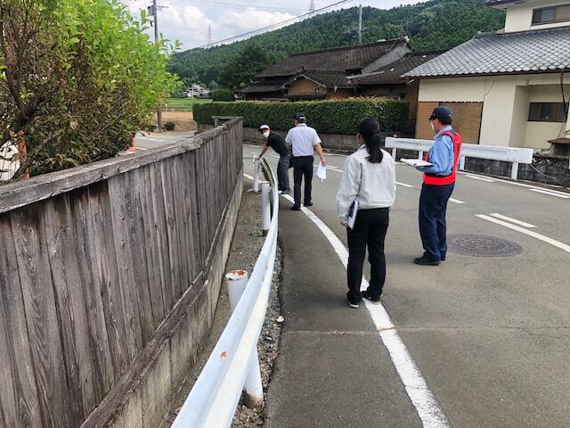 町の危険箇所点検がありました。今回は、資料のように御所原橋付近の狭い路側帯と横断歩道について、申請したものの確認でした。