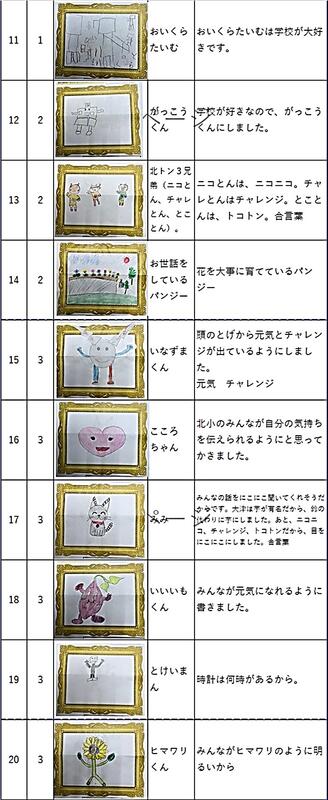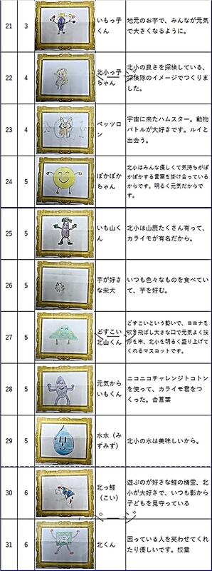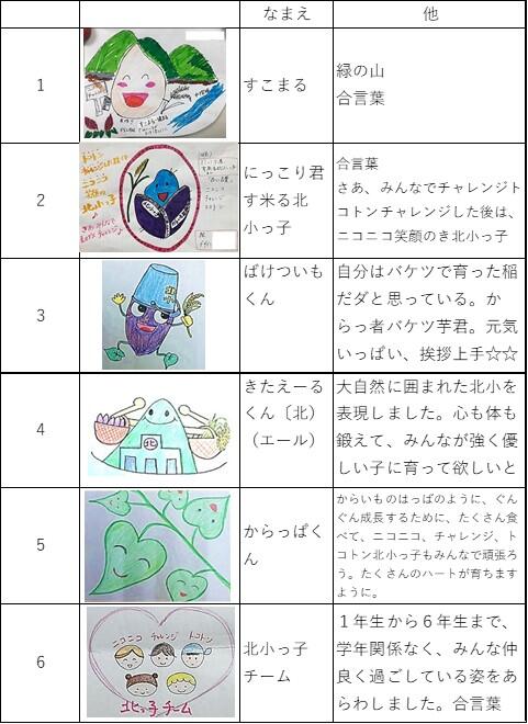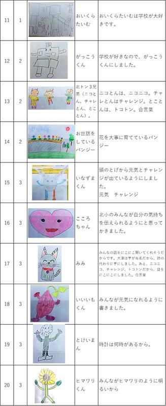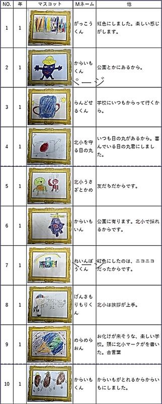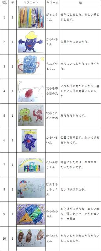 先日お知らせ致しました北小マスコット、続々提出されています。中には、先生方も応募されています。ふるってご応募ください。
