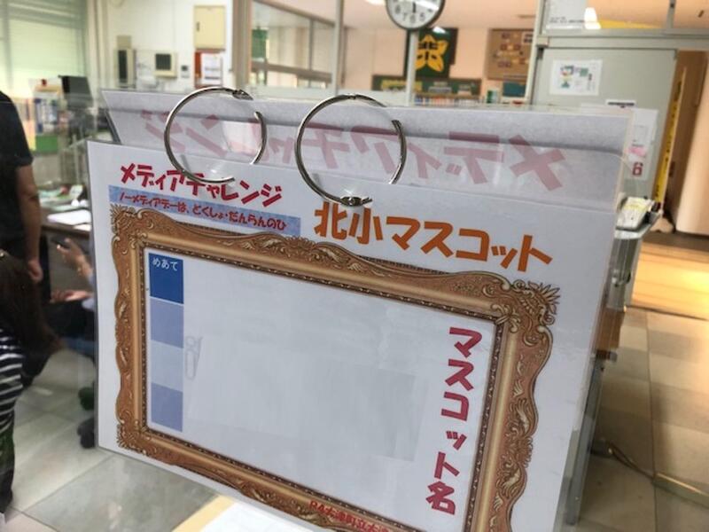 「つきましは、後で紙を配りますので、紙に書いたりまたはタブレットで書いてもらっても良いです。担任の先生に出してください。」「できれば、北小みんなで頑張っていることが分かるもの、合言葉は、ニコニコ チャレンジ トコトンですよね。自然が豊かとか、お芋や稲の栽培もしています。そんなことが一目で分かる、北小みーんなを表すマスコットにしたいと思います。」「今回は、先生方で相談して優秀なものを決めて、3月までは本校のマスコットにしたいと思います。お尋ねは、私か担任の先生までお願いします。また、期間は今週の金曜日。9月2日までです。」