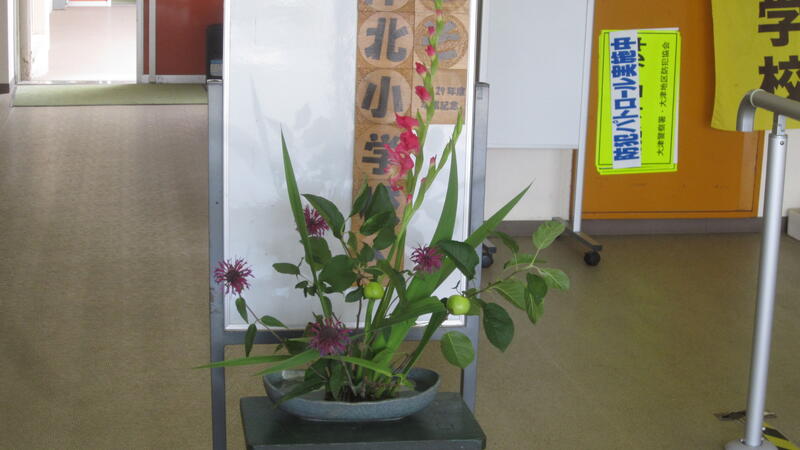 今日は待ちに待った(?!)公開授業研究会の日です。4~6年生の子どもたちと担任、学習支援員の先生方が公開授業を行いました。まずは、玄関や踊り場に吉良校務員力作の生け花が飾られました。うっとり・・・