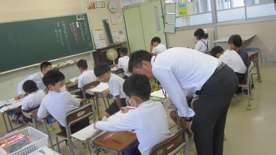 大津町教育委員会から武藤先生が来校され、授業を参観され事後指導が行われました。