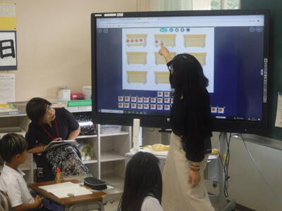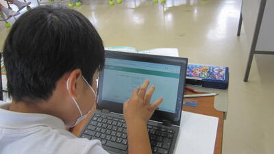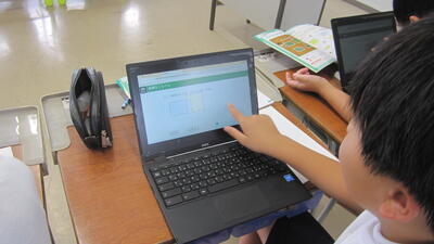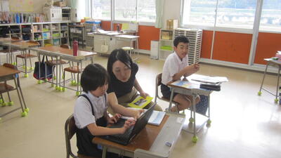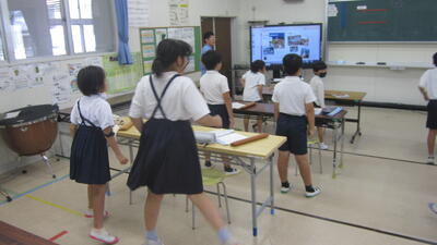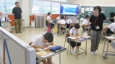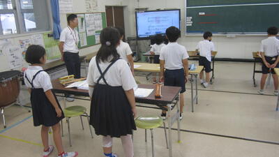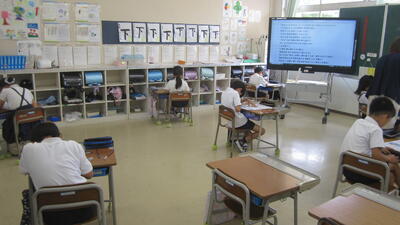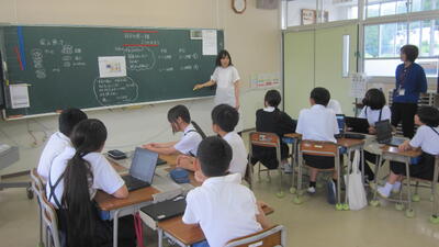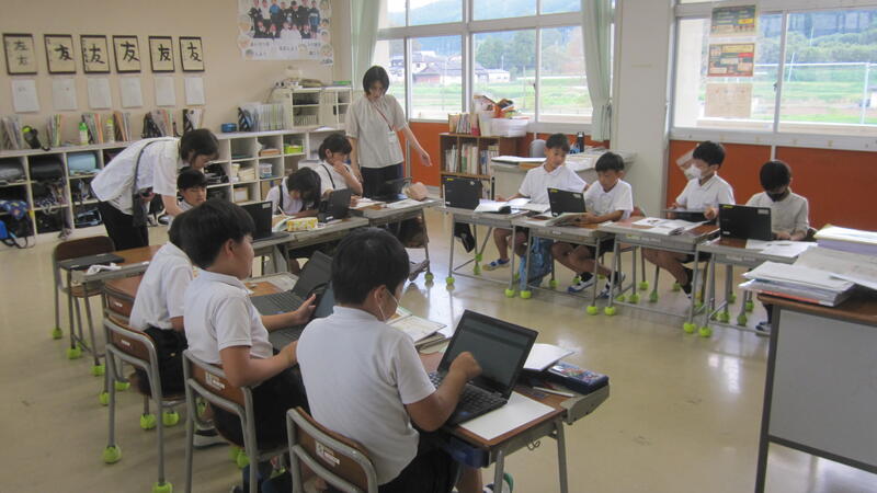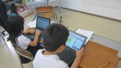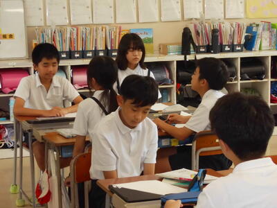 5・6年生のタイピングの早さや、自分から積極的に前出て自分の意見を発表したり、学習リーダー中心に自分たちで授業を進めたりする5・6年生の姿に4年生以下の子どもたちが感心し、憧れる様子が見られました。