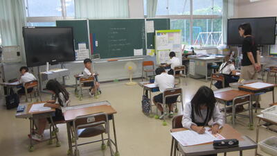 2・3年生、2年は国語、3年は理科のテストの時間です。これも全集中!