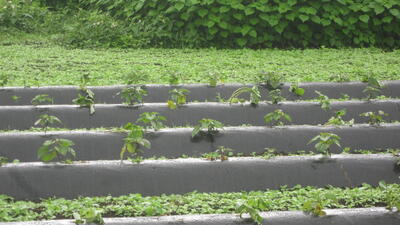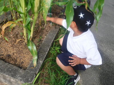 2・3年生の野菜がぐんぐん成長し、もうすぐ実が食べ頃にもなりそうです。(校長 上田 玲子)