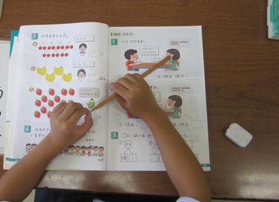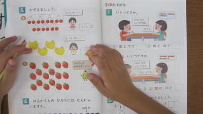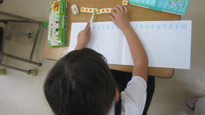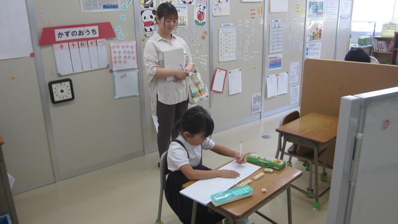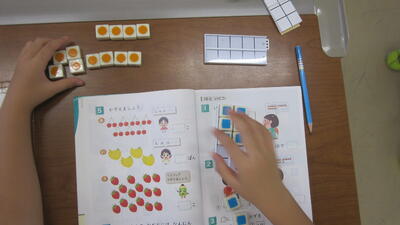 もう、引き算を学習しています。すらすらと数字もかけるようになり、数図ブロックを上手に操作します。