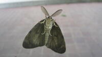 校長室に戻ってきたら、「蛾?」「蝶?」らしき虫が、網戸に止まっており、目が合いました。羽側から見ることはありましたが、裏からみたことはありません。思わず1枚シャッターを切ってしまいました。