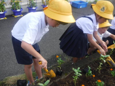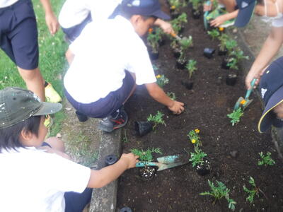 また、先週の朝活動では、学年の花壇にお花を植えました。雨が全く降らなくなったので、水やりしないと枯れそうです。