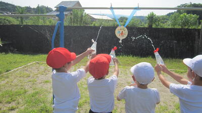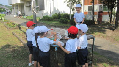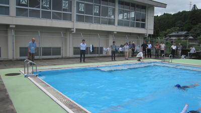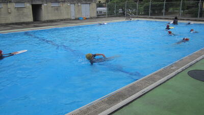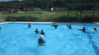 異学年集団ですが、みんな楽しんで参加していました。プールの水がもうちょっと冷たいと気持ちよかったでしょうに・・・。