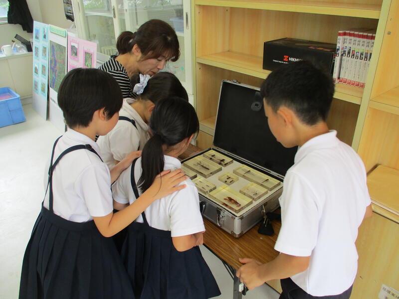 「これ知ってる!」「見たことある!」「これは何?」いろいろな声が聞かれました。虫の標本に一番引き付けられていたようでした。理科の教科に興味をもつきっかけになったら嬉しいです。