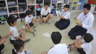 本日は、クラブ活動もありました。物づくりクラブは折り紙を使って作品作り、文化クラブはトランプカードゲーム、運動クラブは水球です。