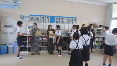 来週は、現地学習です。フィールドワークで矢護川や真木地区などに出かけながら、説明を聞く学習が待っています。いずれは、子どもたちのボランティアガイドが育つといいなあ・・・。(校長 上田 玲子)