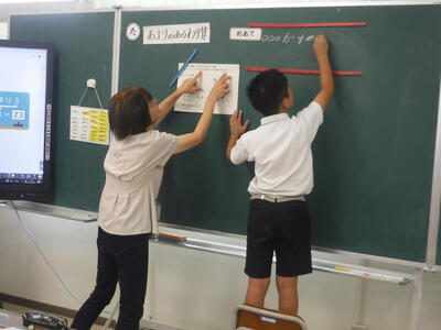 明日は本校での公開授業研究会で、近隣の小学校の先生方が50人近く来られます。伸び伸びと自分の考えを表現して協力しながら授業を作り上げていってほしいと思います。【校長 上田玲子】