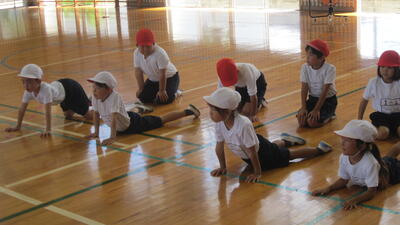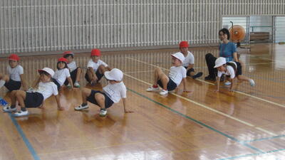 体育館では、「ねことねずみ」ゲーム、ライン鬼ごっこをしました。