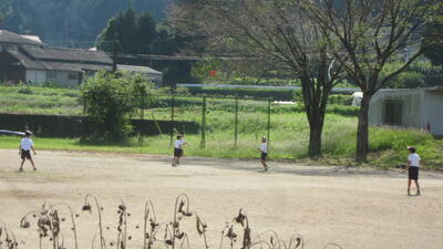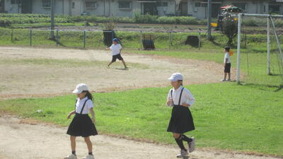 1~2年生は体育でサッカー遊び。走る走る走る走る・・・。毎回運動量がしっかりある体育で元気はつらつです。