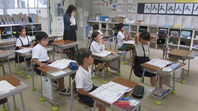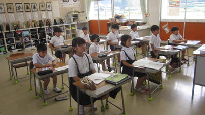 4年生も5~6年生も精一杯授業に集中して自分の意見を考え表現しようとしていました。