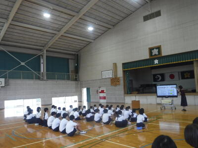 今日は、全校児童でのにっこり集会(人権集会)がありました。