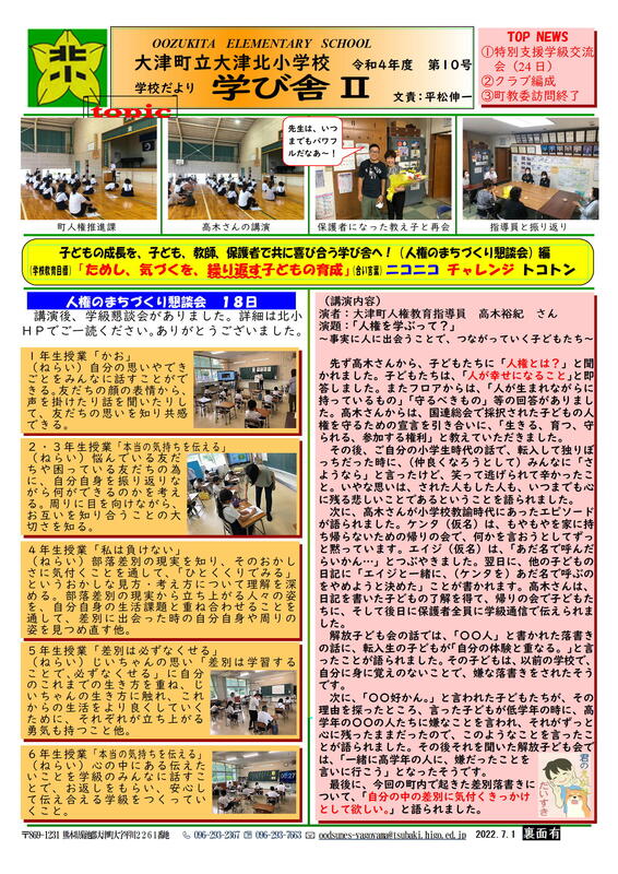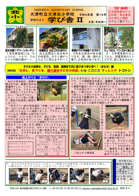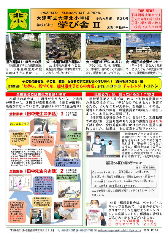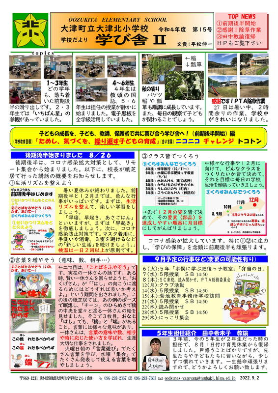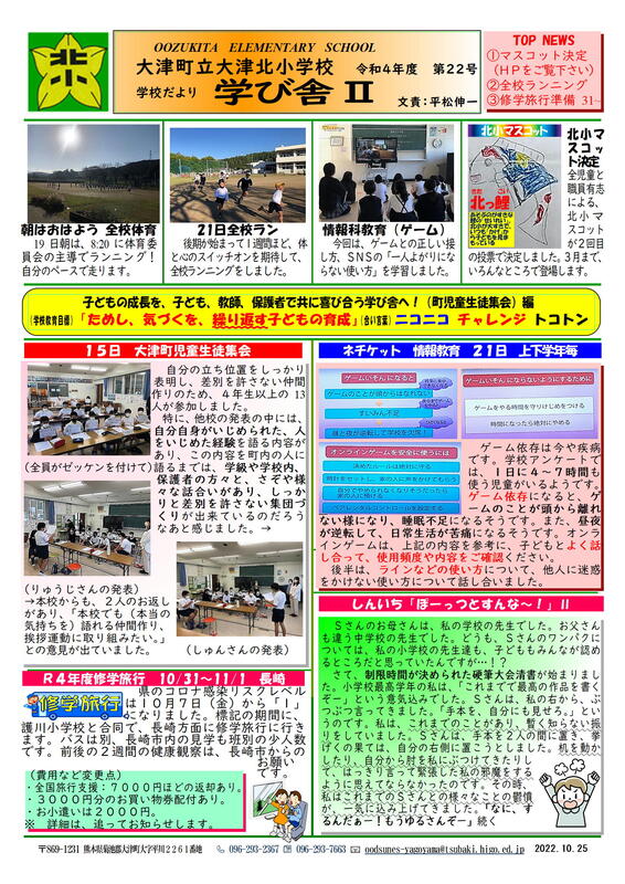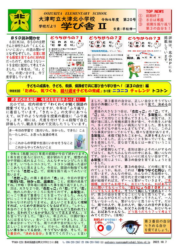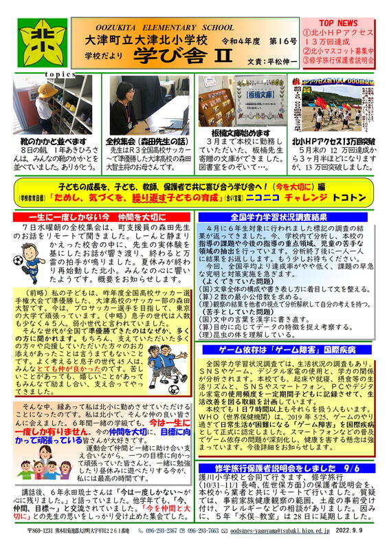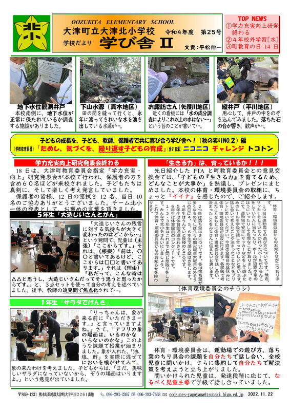 令和4年度の、大津町立大津北小学校学校通信第1号を発刊しました。