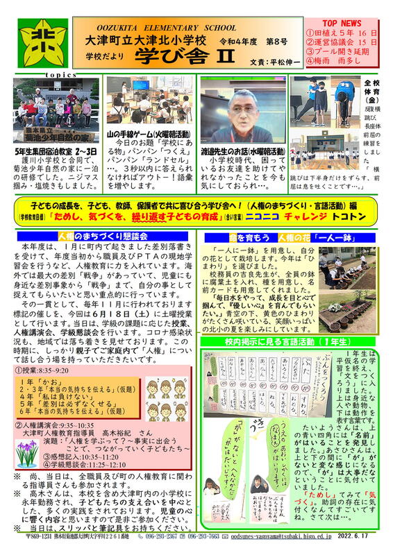 「北小の風」 vol.8 R6.7.19発行 PDFはこちら→「北小の風」vol.8.pdf