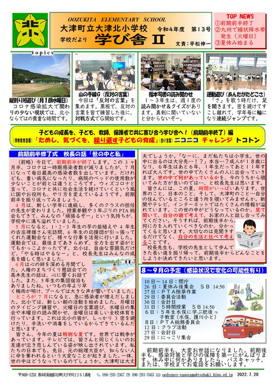 「北小の風」 vol.9 R6.8.27発行 PDFはこちら→「北小の風」vol.9.pdf