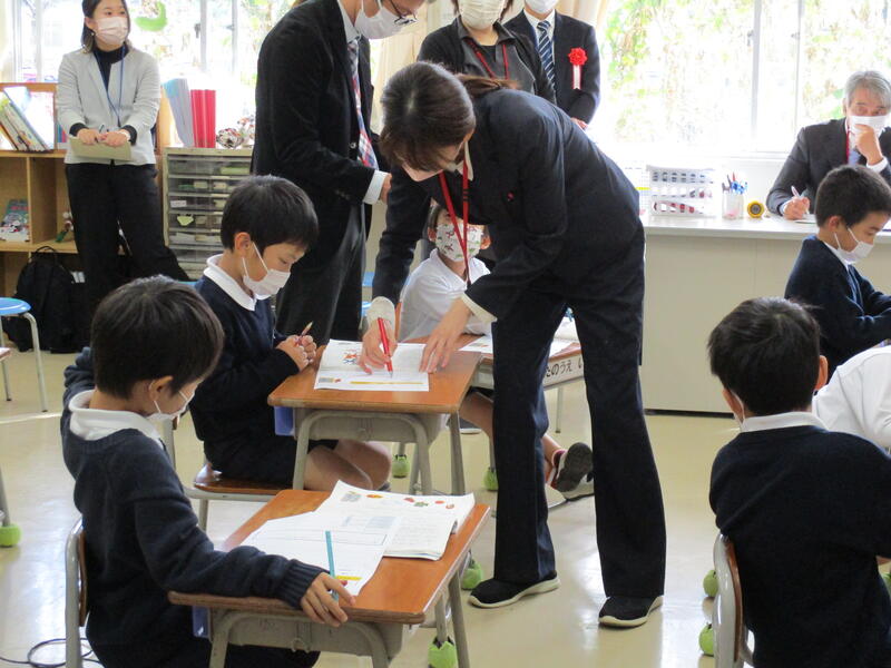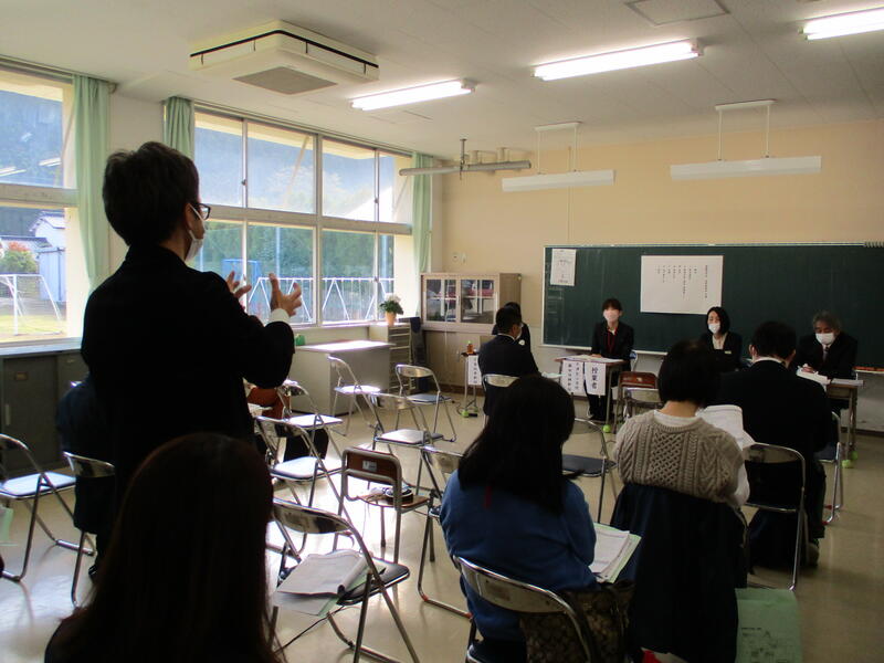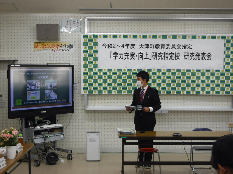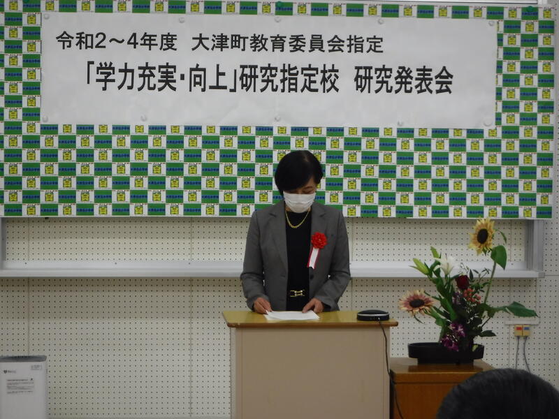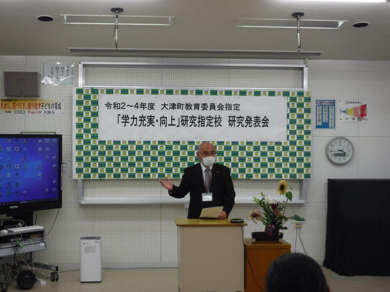 去る11月18日(金)午後、大津町内小学校職員、本校第3代校長 坂田満留先生、協力者として室小 村田典子校長、大津小 志賀裕美教頭、町教育委員会の方々を本校に向かえ、国語科の研究発表会がありました。