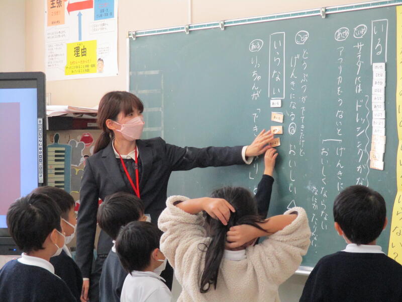 当日は、校外から60名(リモートの方はこれ以外に70名)方を迎え、1年生「サラダでげんき」、5年生「大造じいさんとがん」の公開授業、各分科会、全体会の日程で、活発な協議がありました。
