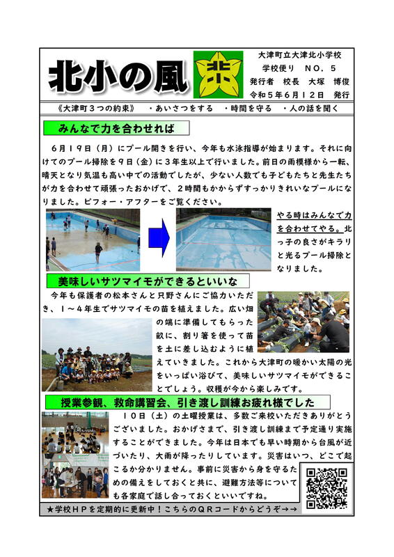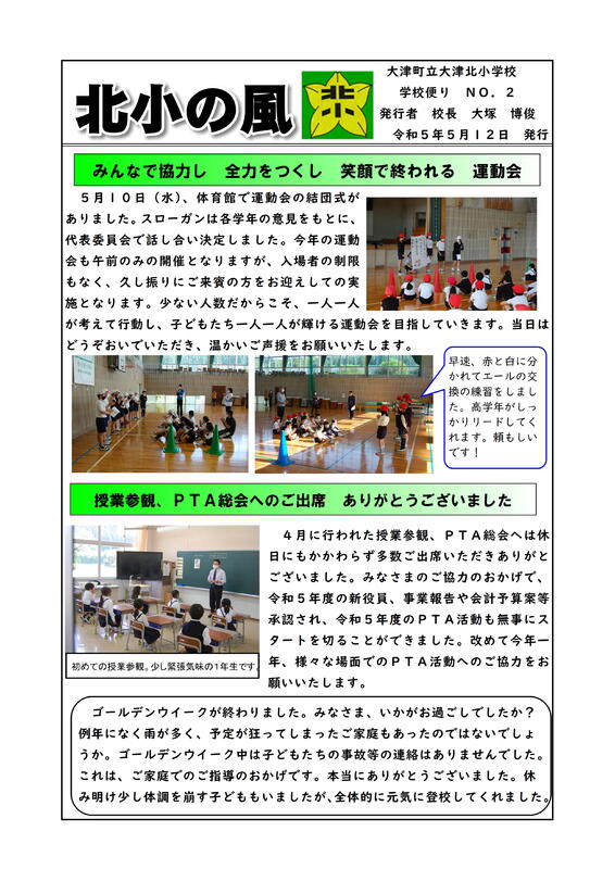 「北小の風」 vol.6 R5.6.22発行 PDFはこちら→北小の風 vol.6.pdf