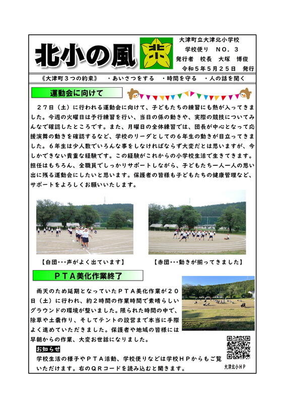 「北小の風」 vol.3 R6.5.10発行 PDFはこちら→「北小の風」vol.3.pdf