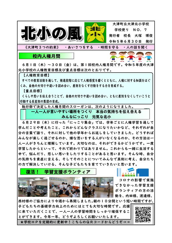 「北小の風」 vol..7 R6.7.11発行 PDFはこちら→「北小の風」vol.7.pdf