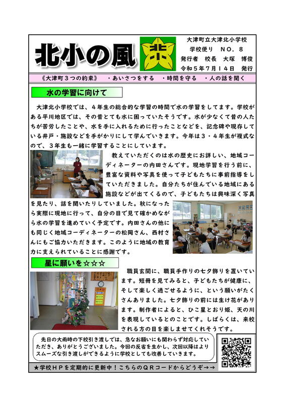 「北小の風」 vol.8 R5.7.14発行 PDFはこちら→北小の風 vol.8.pdf