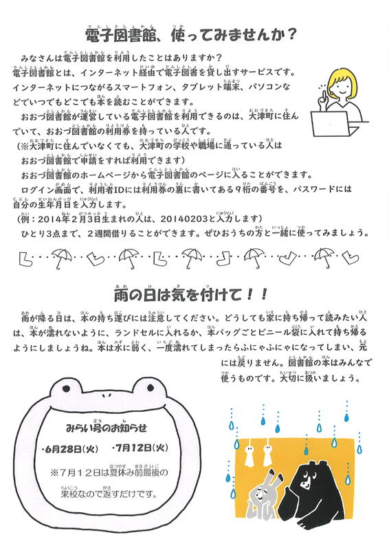 2週間に1回の「みらい号」来校を楽しみにしている子どもたちがいます。給食が終わるとすぐに2年生男子が何人もやって来ました。