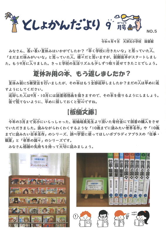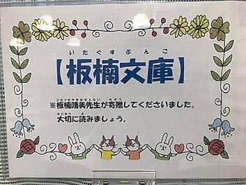 今年の3月末で定年退職された板楠靖美先生より、学校のみんなのために本を寄贈していただきました。図書室北側から入って、すぐ右側に棚を作りました。楽しいためになる本がいっぱいです。是非、手に取って見てください。板楠先生、ありがとうございます。