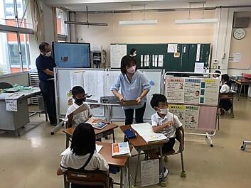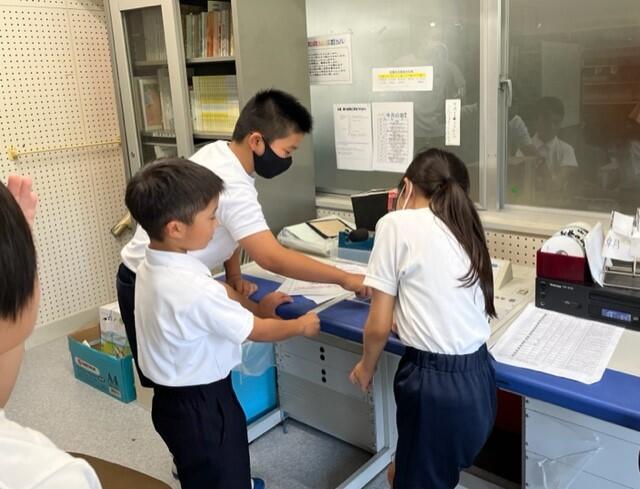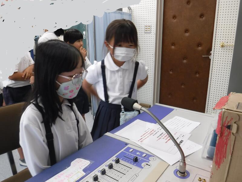 おや? 給食時間なのに、放送室に1年生の姿が…。何をしているのでしょうか?