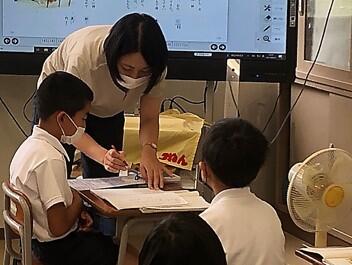 総合的な学習の時間に学んだことを、クイズで教えていました。