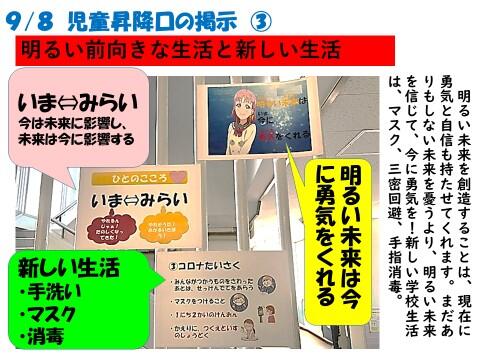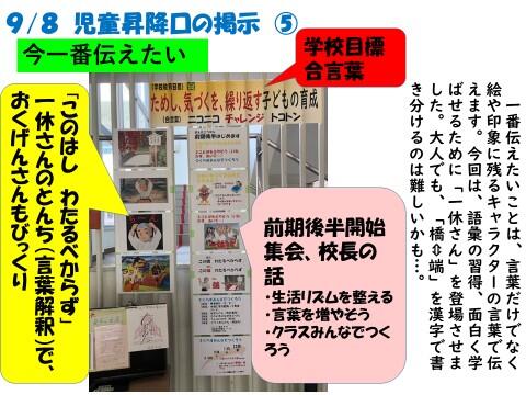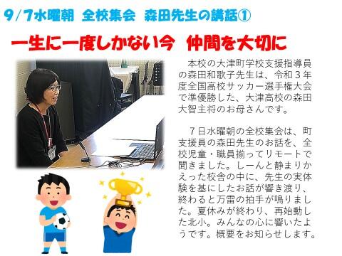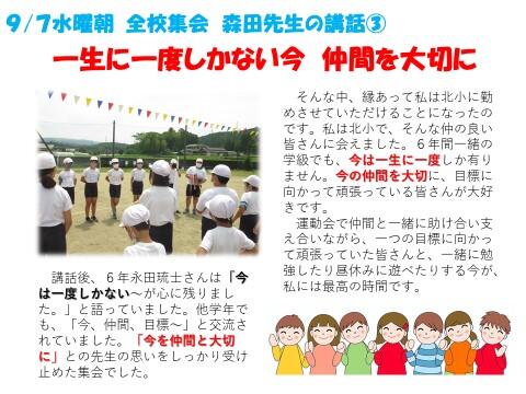 7月20日、前期前半終わりの会で、大塚養護教諭が全校児童に向けて保健指導をしました。「あいうえお」を頭文字に使って、分かりやすい内容でした。子どもさんとも、一緒にHPを見て、話し合われてはどうでしょうか。