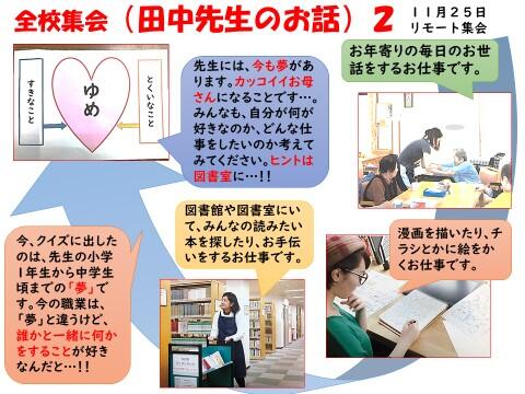発表もお返しも、自分の言葉で自分の意思での発表でした。今年は、朝活動で言葉遊びや集会を継続的に行っています。また、国語では3点セットを使った発表や対話を頑張っています。いい効果が出てきたのかもしれません。